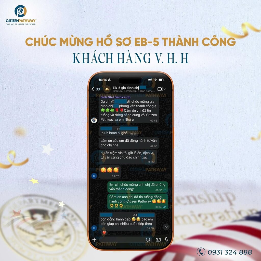Trong các hồ sơ EB-5, phỏng vấn thành công luôn là cột mốc mang nhiều cảm xúc nhất. Với gia đình chị V. H. H, đó là khoảnh khắc khép lại 21 tháng chuẩn bị, chờ đợi và kiên định – để mở ra một chương mới tại Hoa Kỳ 🌱